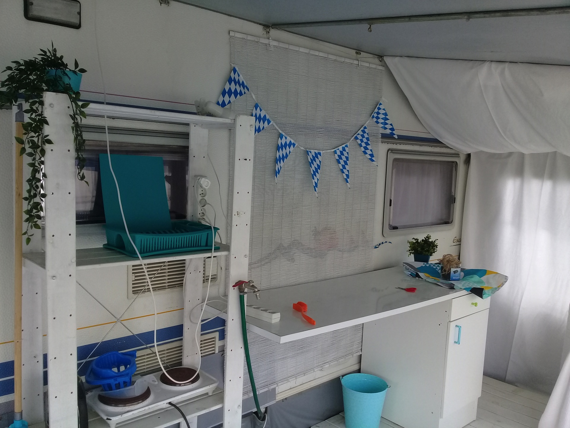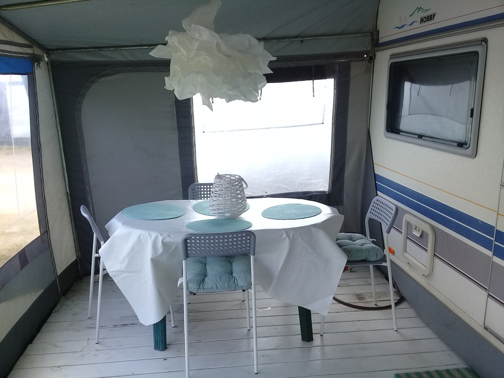Przyczepa stoi w 2 linii brzegowej na polu Chałupy 6 po lewej stronie od wjazdu. .