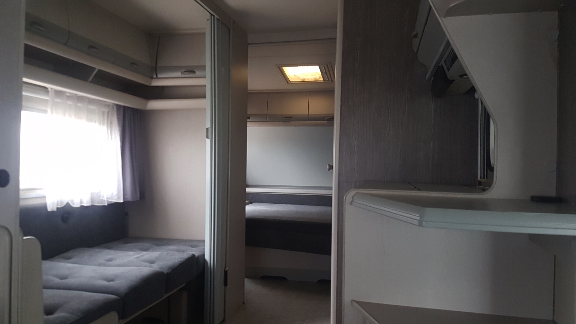 - w części środkowej szerokie łóżko pojedyncze z zamykanymi drzwiczkami