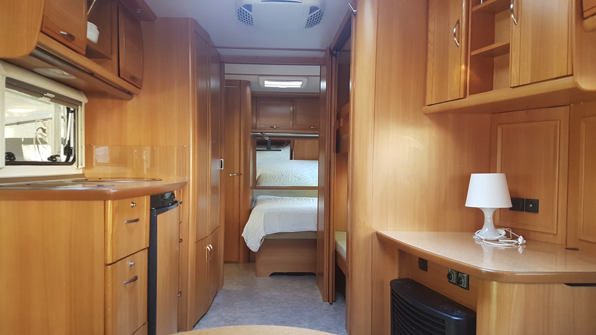 • na końcu przyczepy po lewej łóżko małżeńskie